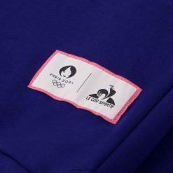 – etikett vevd med paris 2024-logoene og den sporty hanen i korsryggen til høyre ved porten