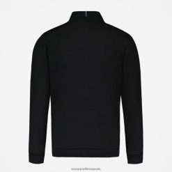 – glidelås midt foran, 2 forlommer med rør, blå/hvit/rød etikett med “le coq sportif”-tekst på kragen midt bak